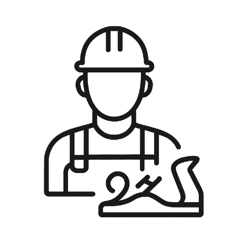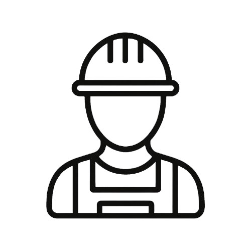 • Line drawing of a construction worker wearing a hard hat and safety vest.